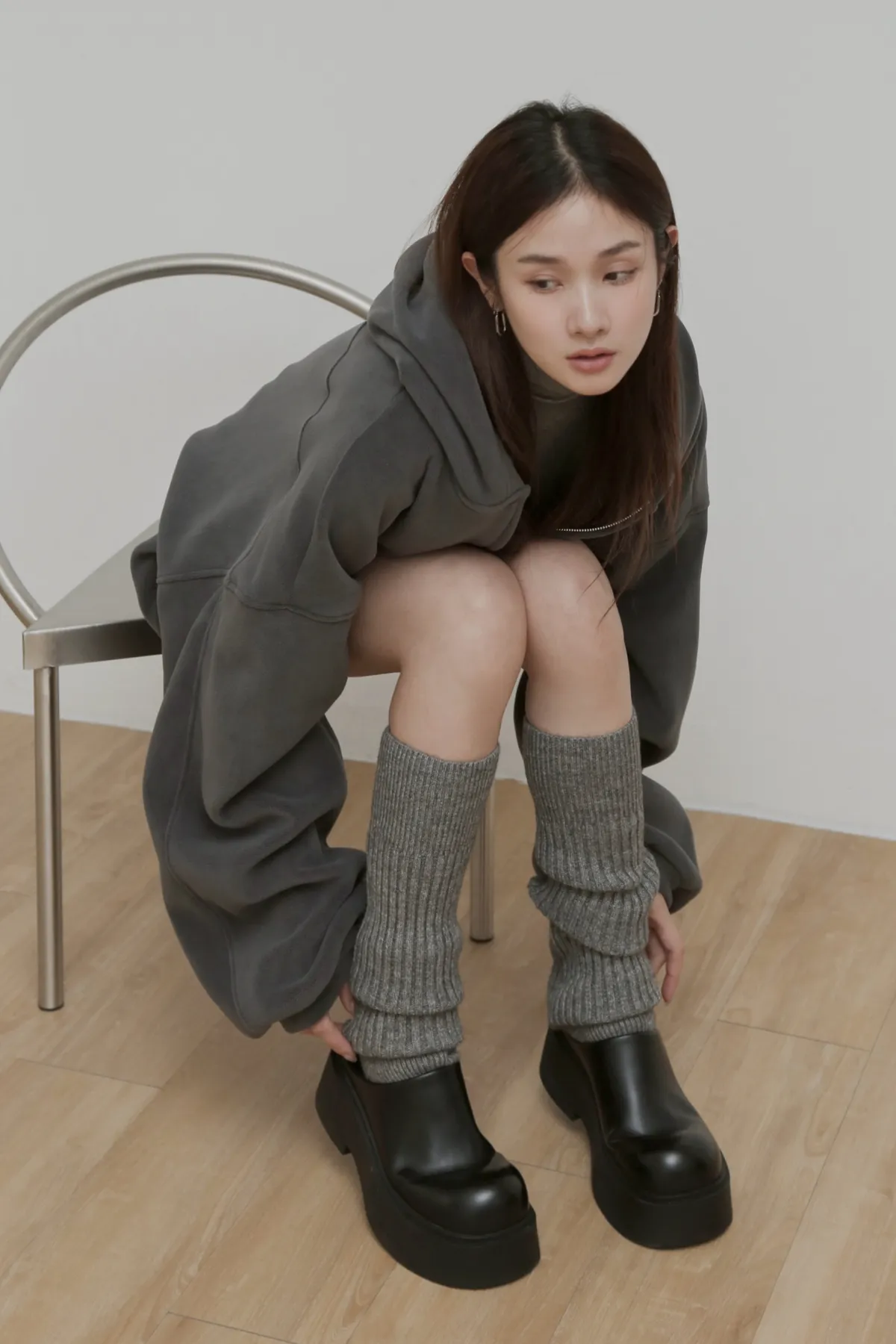 粗線羊毛混紡的堆堆襪套