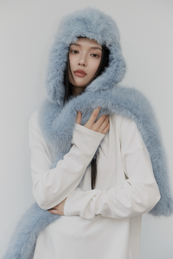 仿貂絨毛毛帽子圍巾組(2 colors)