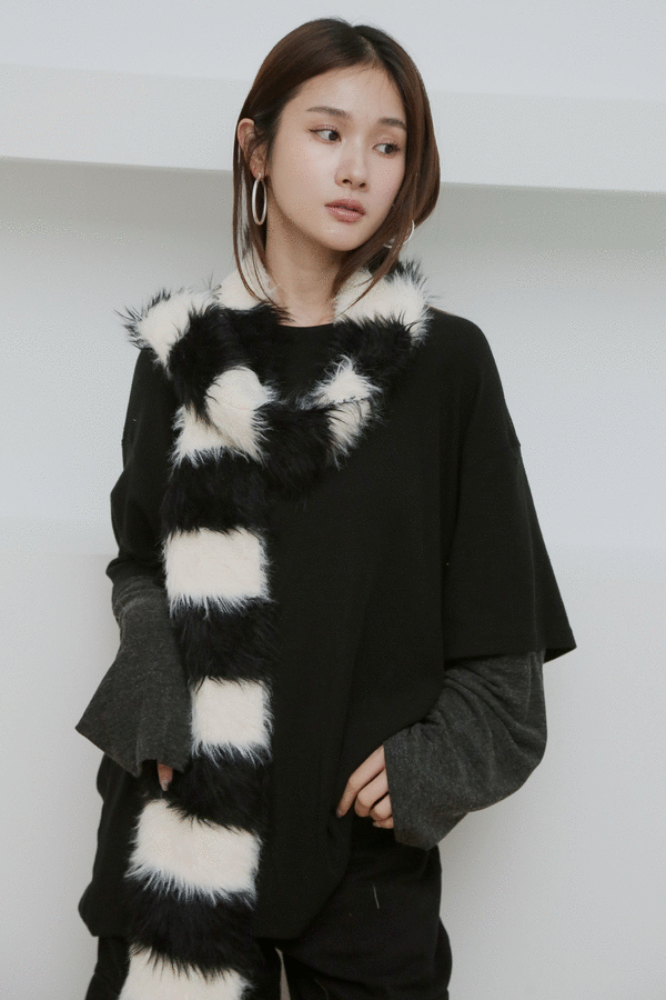 黑白條紋毛毛圍巾