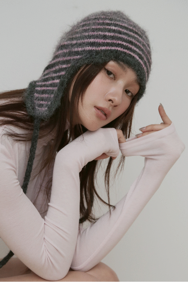 條紋繫帶毛帽(2 colors)