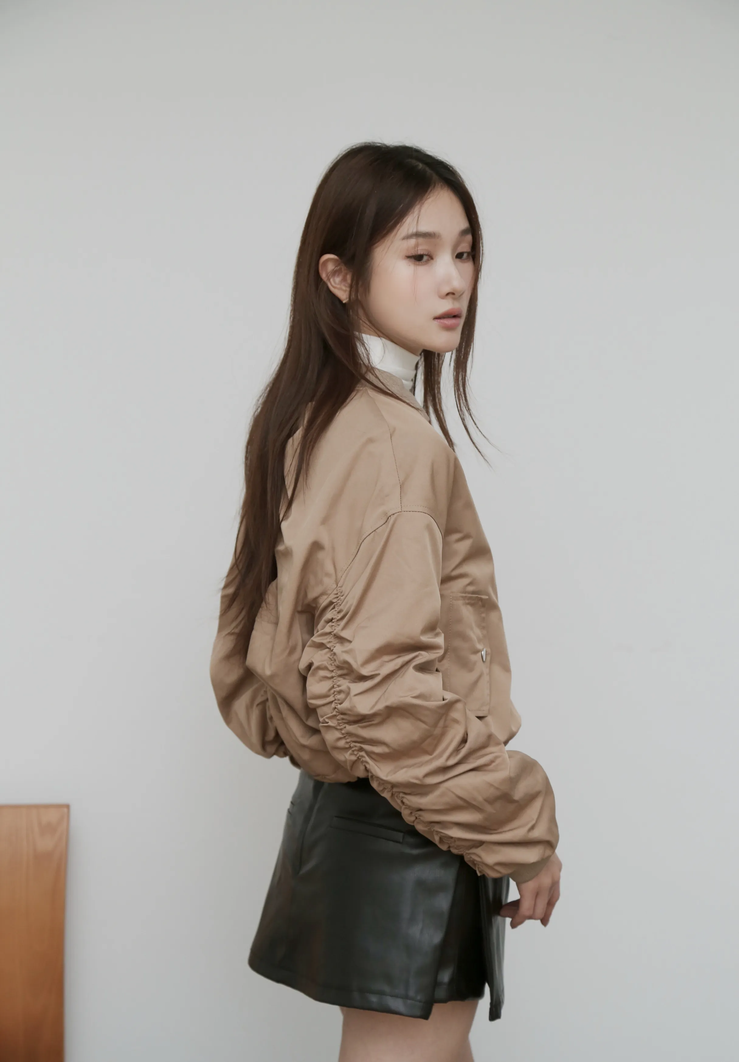面料是有點彈力的PU皮 上身很舒服不會緊