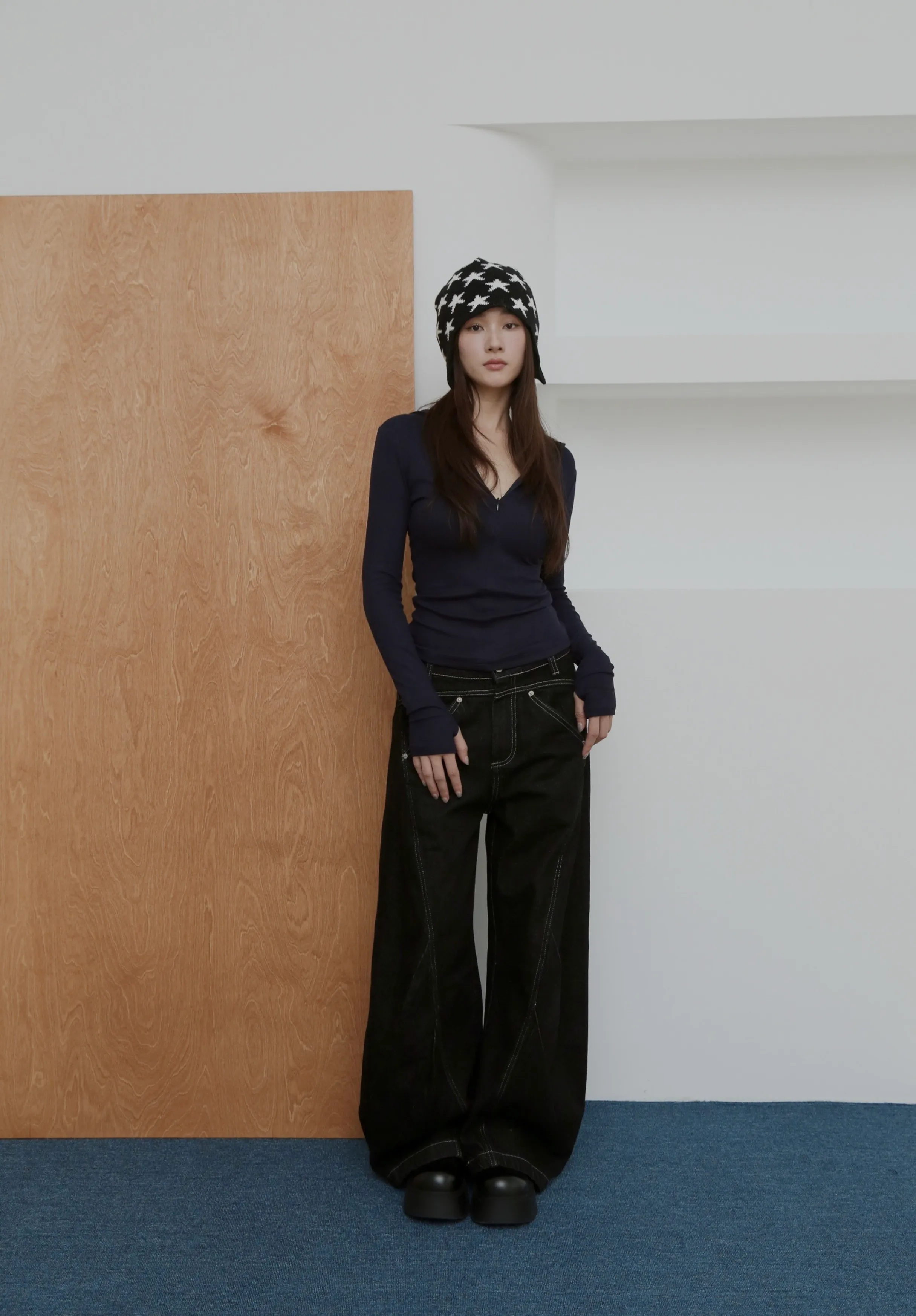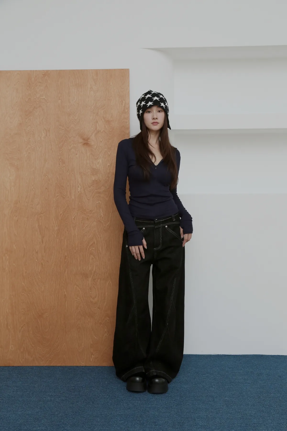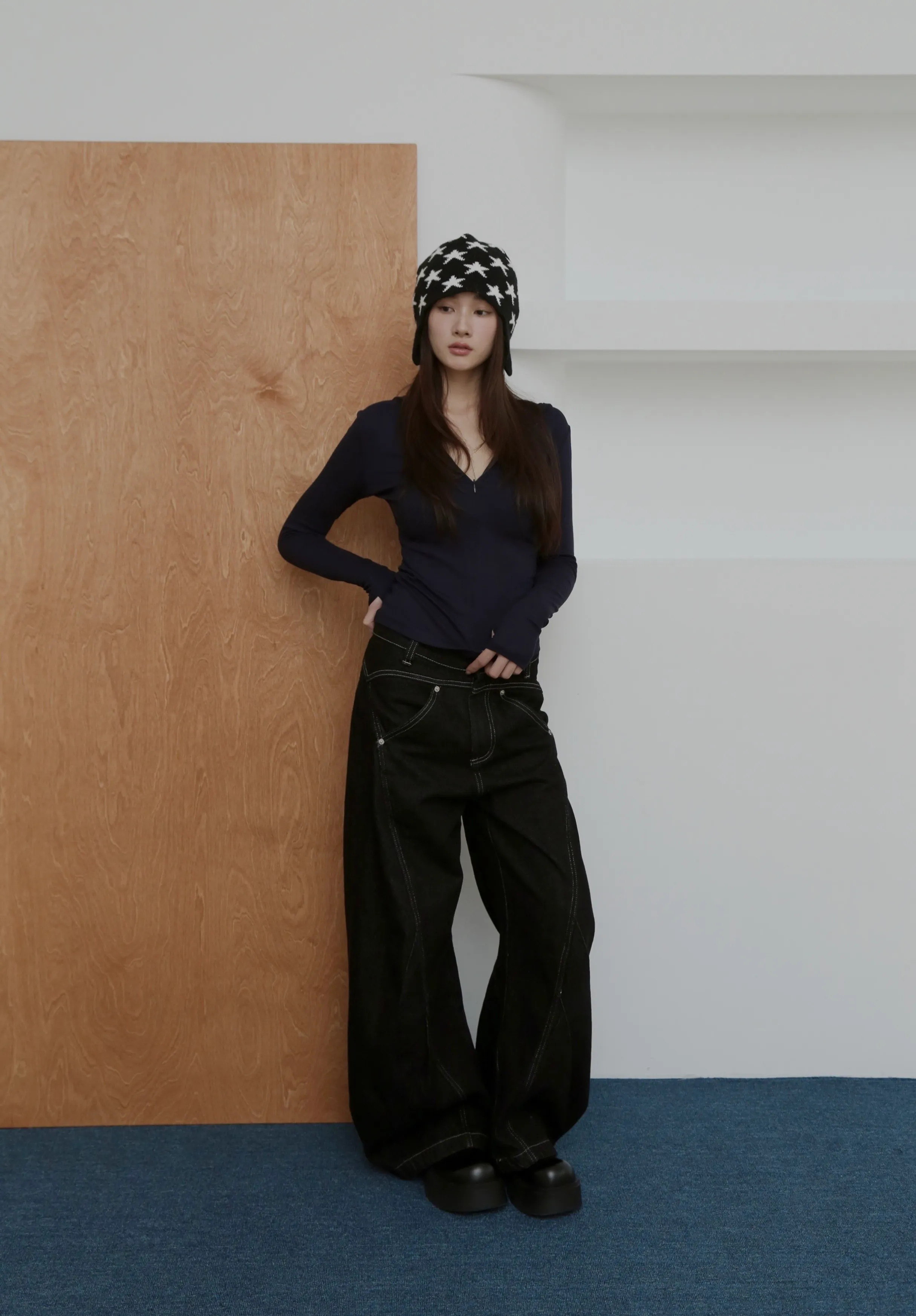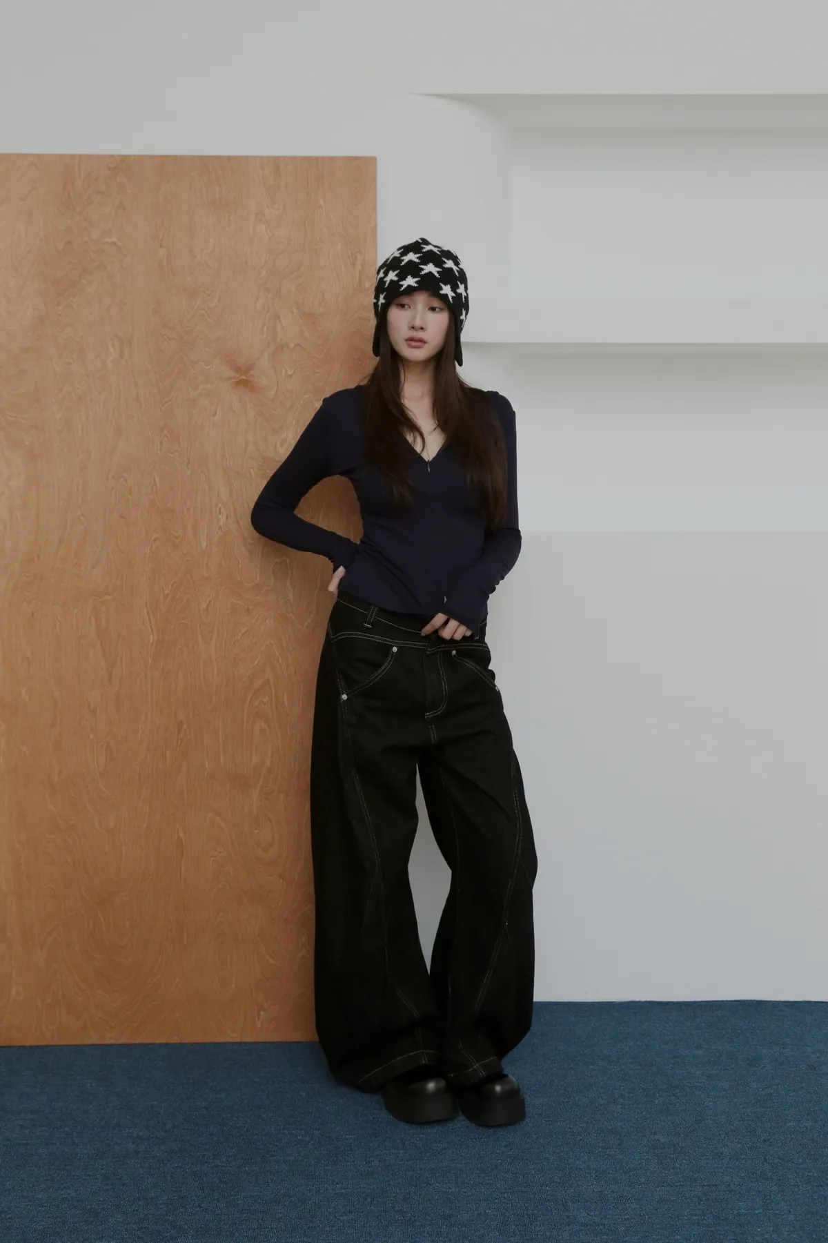 深藍色丹寧面料搭配明線設計 隨便搭都時髦