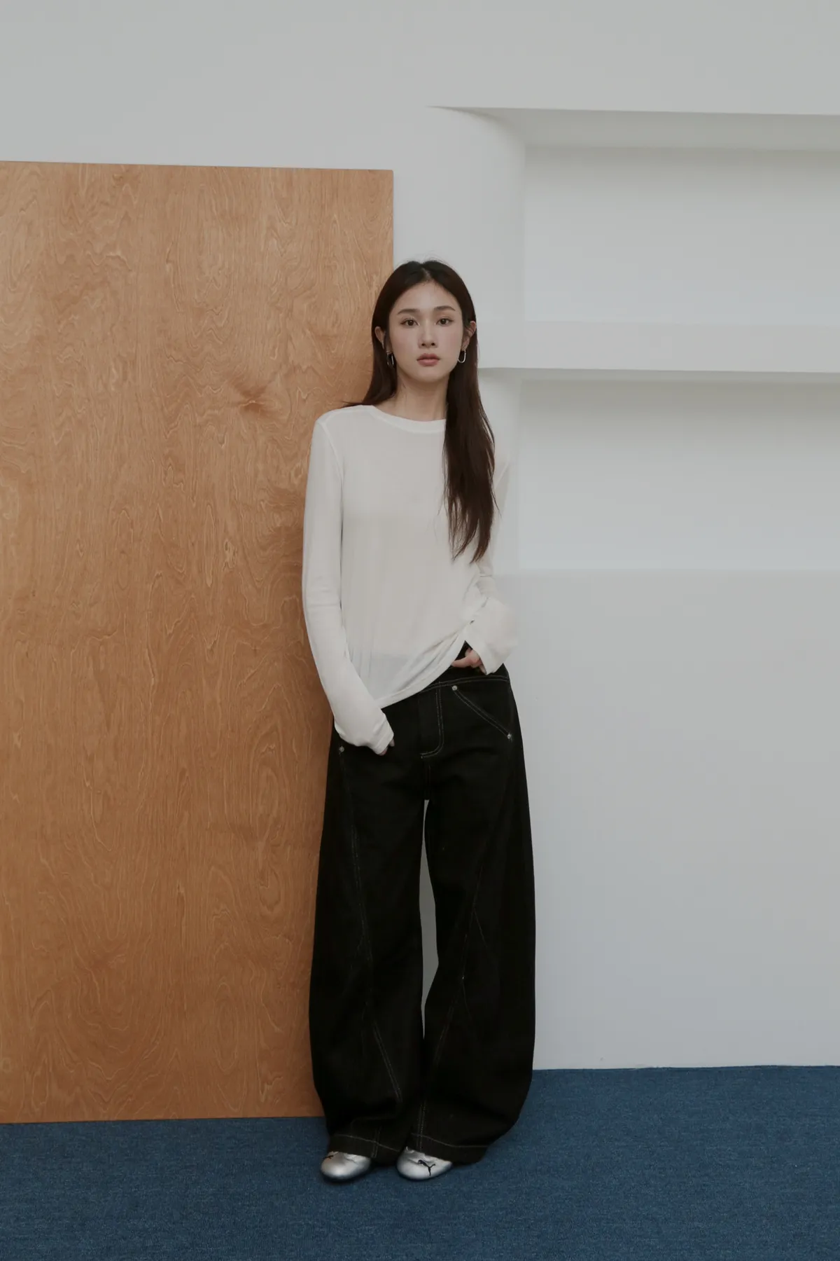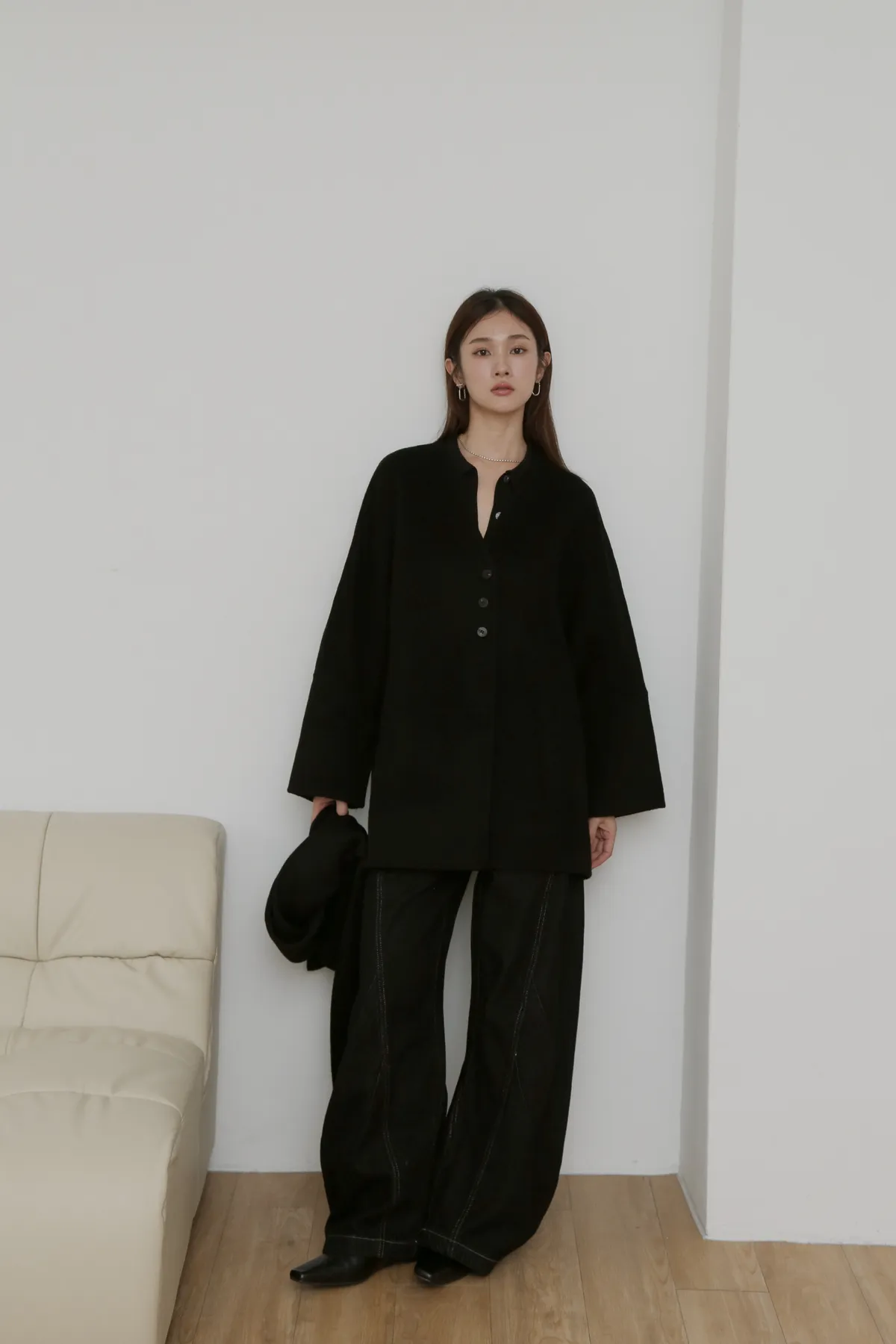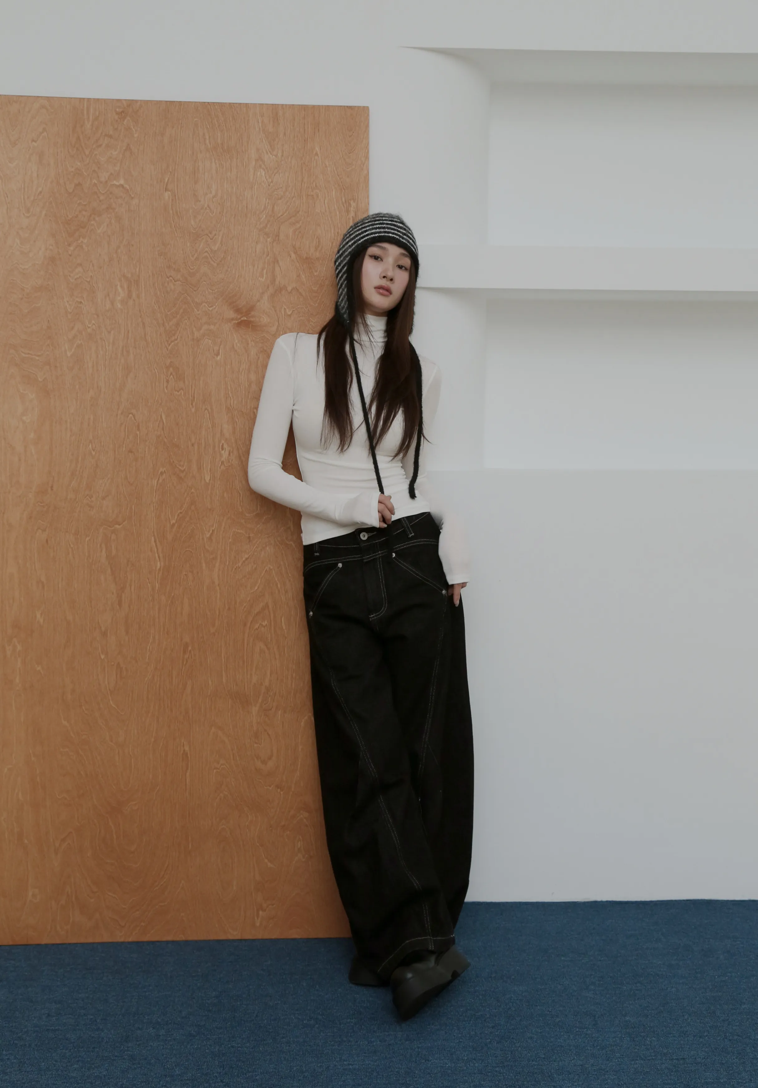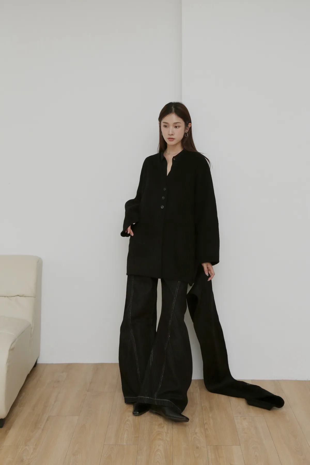 深藍色丹寧面料搭配明線設計 隨便搭都時髦