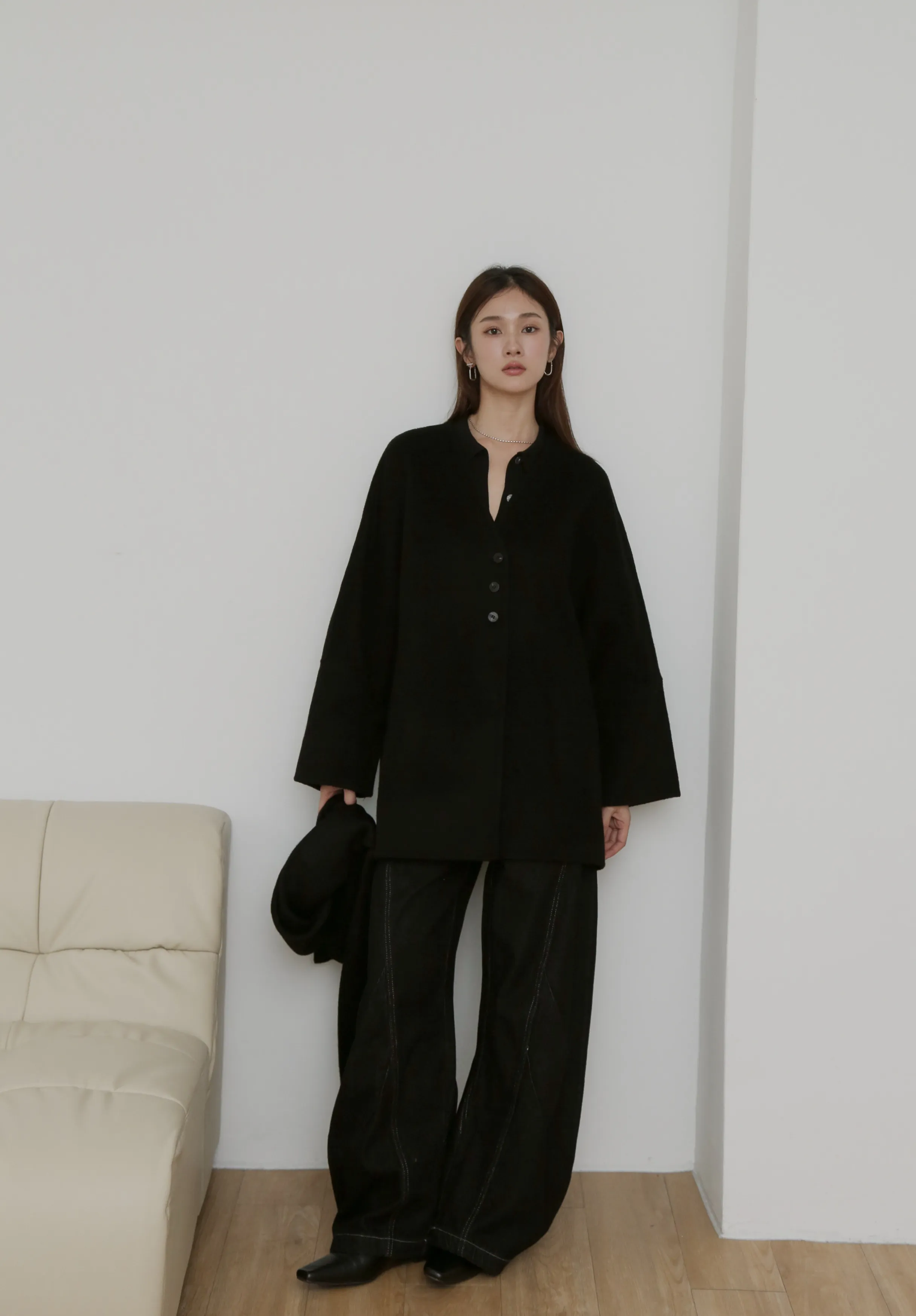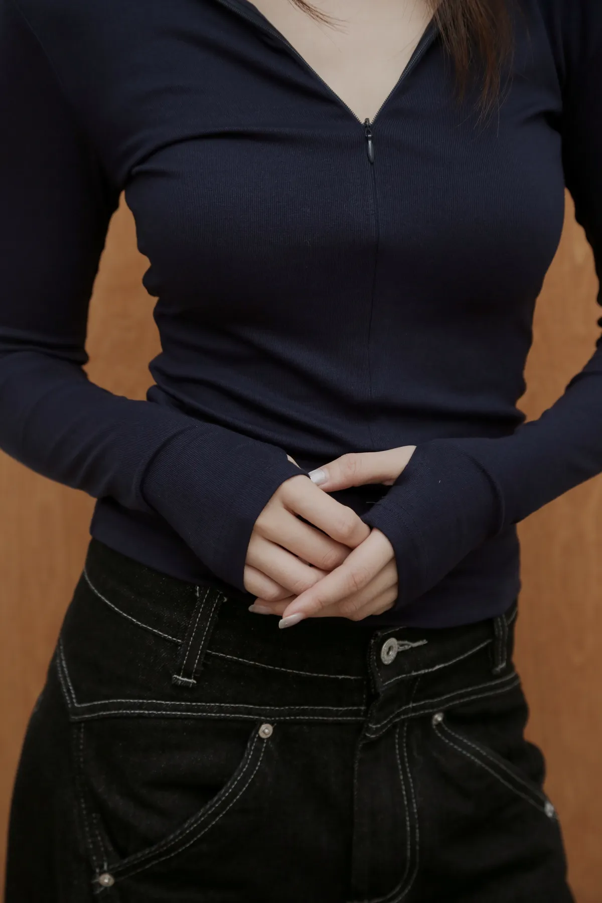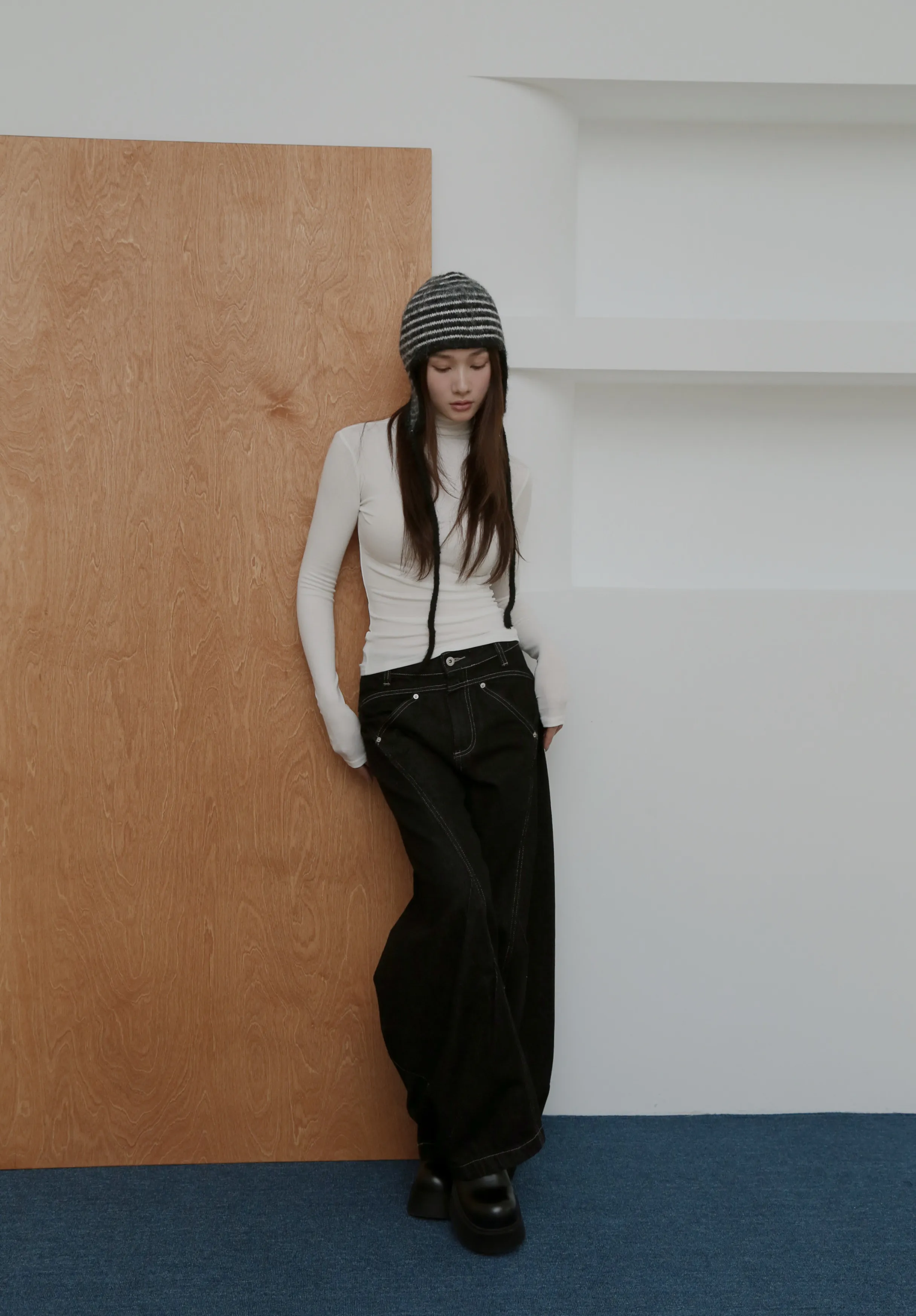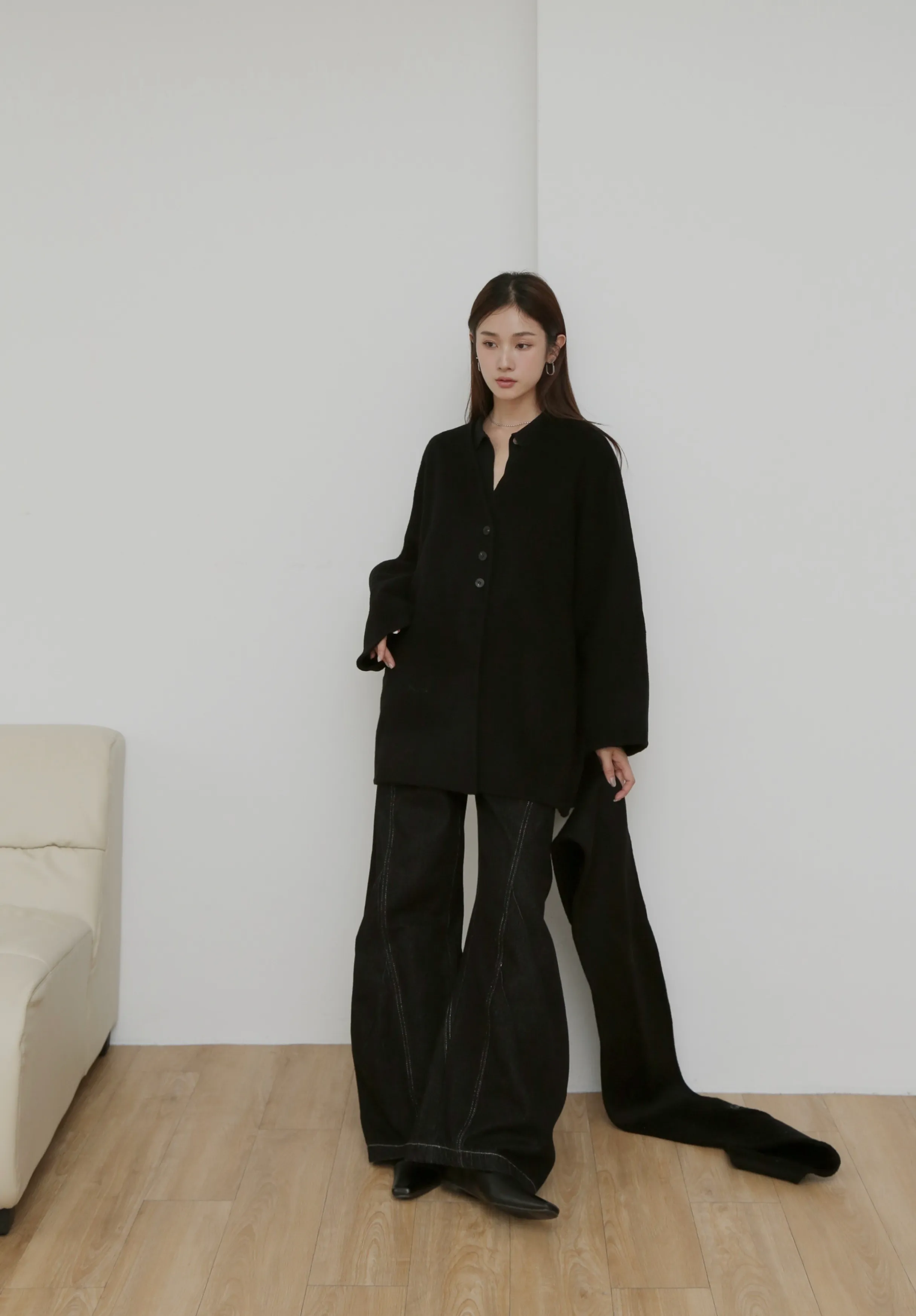 深藍色丹寧面料搭配明線設計 隨便搭都時髦