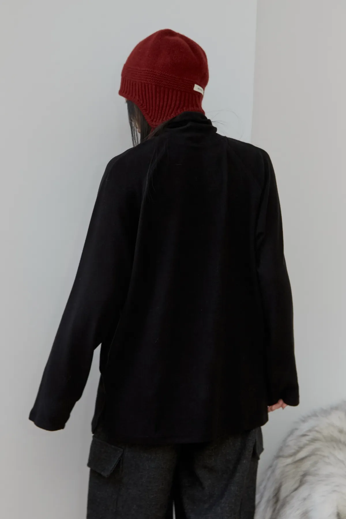 中長版的款式,側邊有小開衩,可單穿也適合疊穿